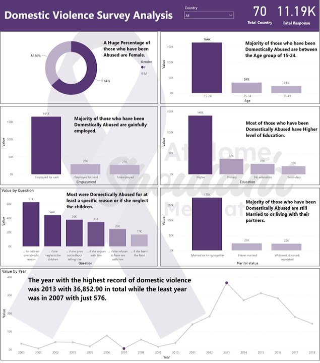 Survey data was dowloaded from online, the survey was conducted in 70 countries with over 70 samples per country and was creatively analysed with Power BI