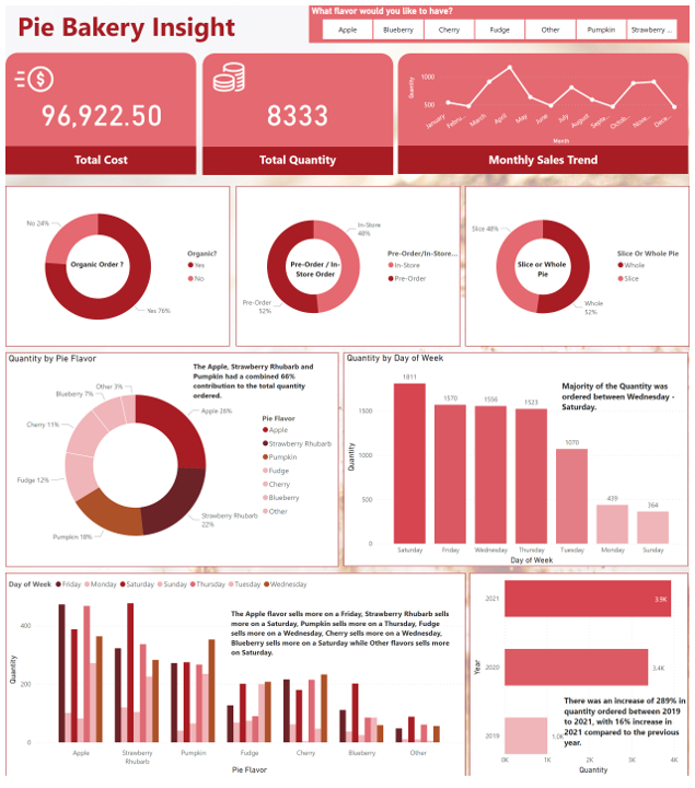 Pie Bakery is Fast food Business with 7 flavors of pie, the analysis was to give an insight to help Pie Bakery with Business Decision.